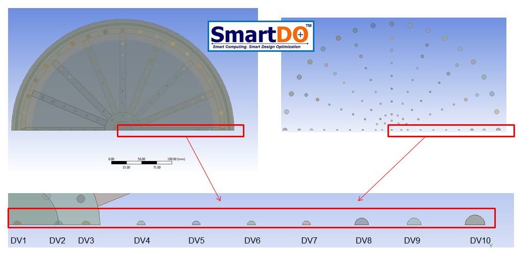 本案例建立了完整的參數化CAD模型,其中10個排氣孔直徑(DV1–DV10)作為設計變數。